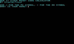 Generates the clock reset passcode for the Gen II Pokémon games.